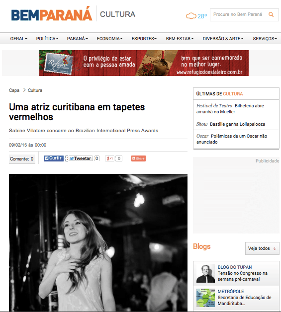 Bem Parana – https://www.bemparana.com.br/noticia/371338/uma-atriz-curitibana-em-tapetes-vermelhos Published February 9, 2015 at 565 × 628 in CLIPPING Bem Parana – https://www.bemparana.com.br/noticia/371338/uma-atriz-curitibana-em-tapetes-vermelhos