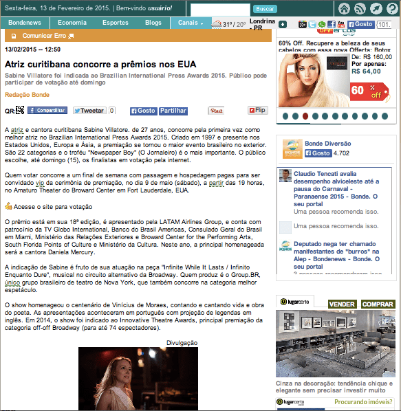 PORTAL O BONDE – http://www.bonde.com.br/?id_bonde=1-2–63-20150213&tit=atriz+curitibana+concorre+a+premios+nos+eua Published February 14, 2015 at 583 × 598 in CLIPPING PORTAL O BONDE – http://www.bonde.com.br/?id_bonde=1-2–63-20150213&tit=atriz+curitibana+concorre+a+premios+nos+eua